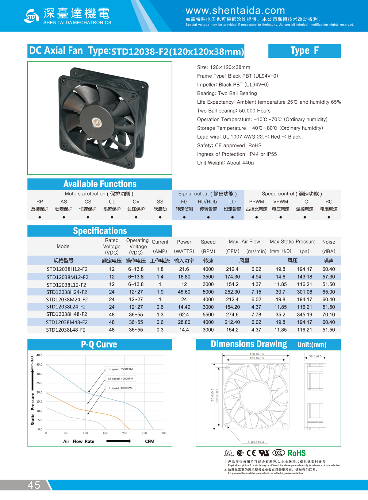 - 120x120x38mm - F